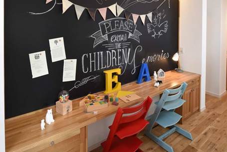 お絵かきをしたり、家族との連絡などコミュニケーションが図れるファミリーウォール。