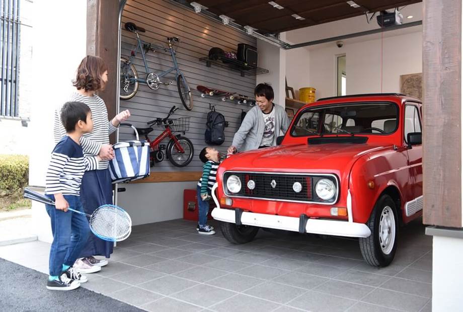 インナーガレージで車を中心に、友人や家族と愉しむご提案。