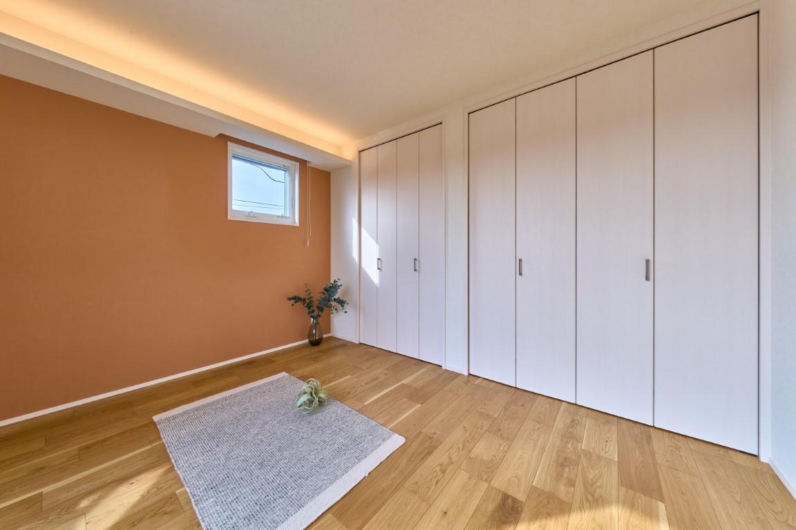 2階には主寝室と子ども部屋をバランスよく配置。全居室にクローゼットを備え、6.5帖・6帖・4.5帖と、実際に選ばれることの多い人気サイズを体感いただけます。家族それぞれが自分の部屋を持ち、ライフステージの変化にも対応しやすい住まいです。
