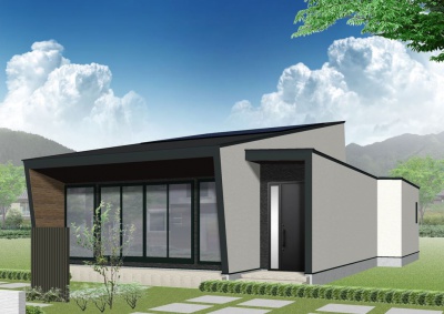 屋根の形に沿ってななめに上げた天井は開放感抜群。高い部分をロフトにすることで、上下空間が生まれワンランク上の平屋に。