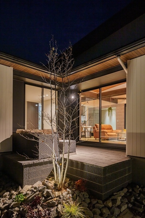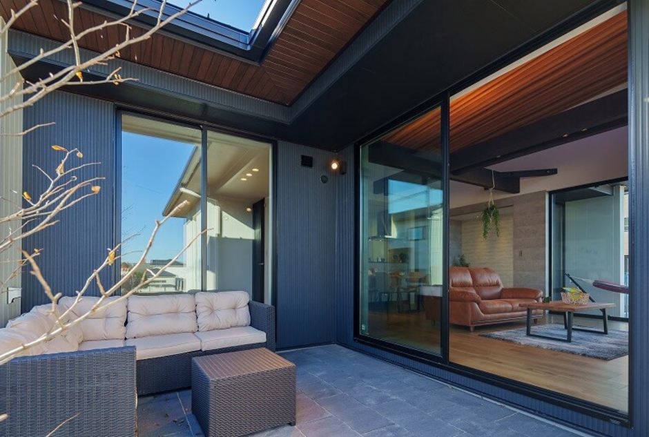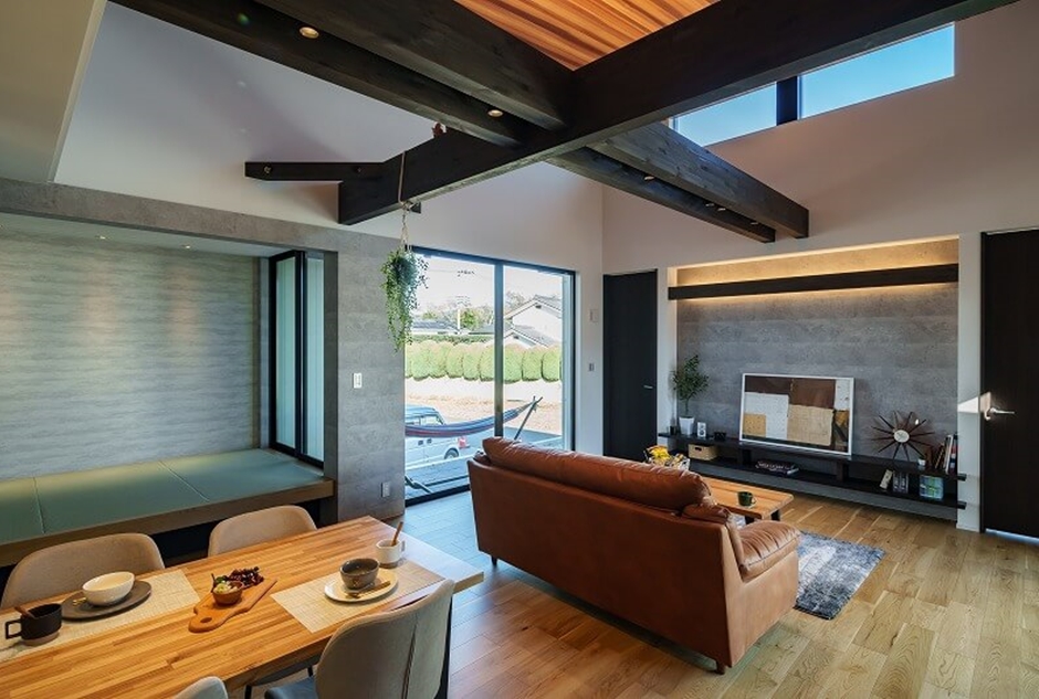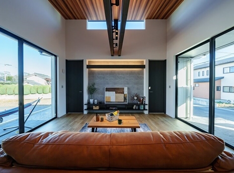 3方向から陽光が降り注ぐリビングと、外と内の繋がりを意識した開放感あふれる平屋が毎日の暮らしを彩ります。