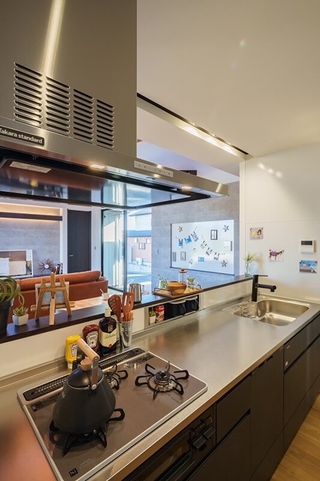 どこに行くのも最短距離のぐるぐる回れるキッチン。動線が短くなることで日々の家事が楽になり、家事の時間短縮で生まれた自由時間は好きなことをして過ごせます。