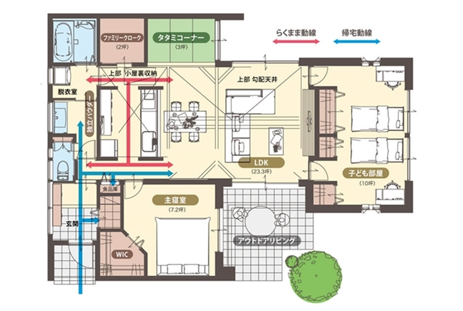客間として使用したり、おむつ替えスペースとして使用したり、お雛様や仏壇などを飾ることができる、家族の憩いの場になるLDK繋がりのタタミコーナーを用意しました。