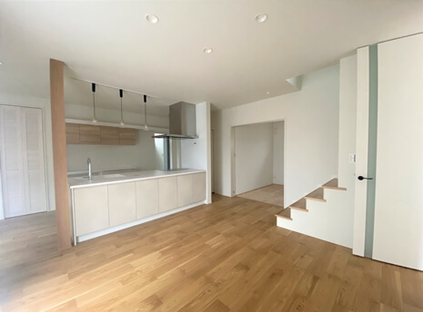 キッチンからすぐにランドリールームへ繋がる動線を設け、家事をする際に移動する距離をグッと短くしました。毎日大変な家事の時間を短くできます。