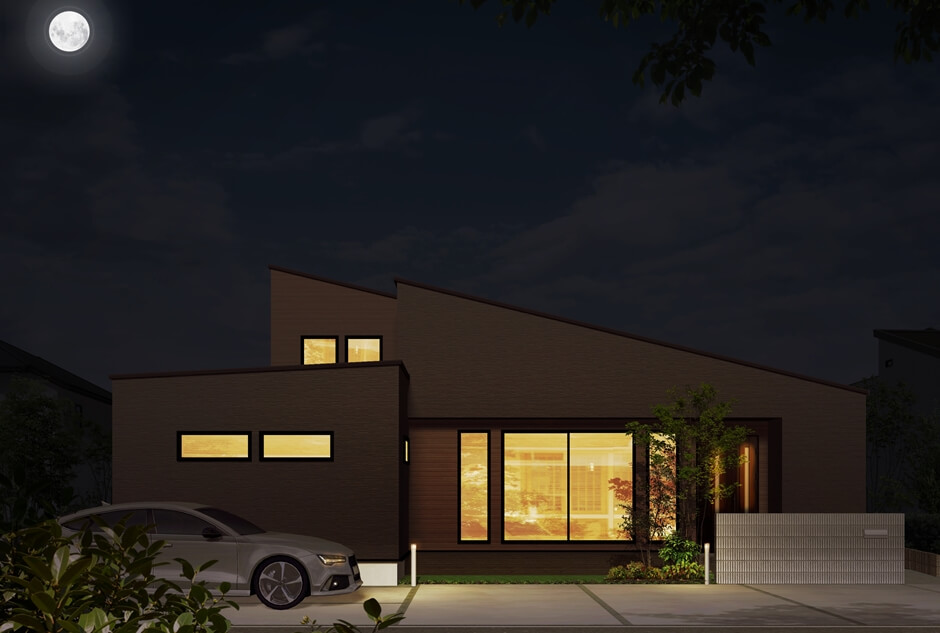 屋根の形に沿って天井を上げた勾配天井仕様のLDK。空間が縦に広がるため開放感があり、家族が自然と集まる快適空間となります。
