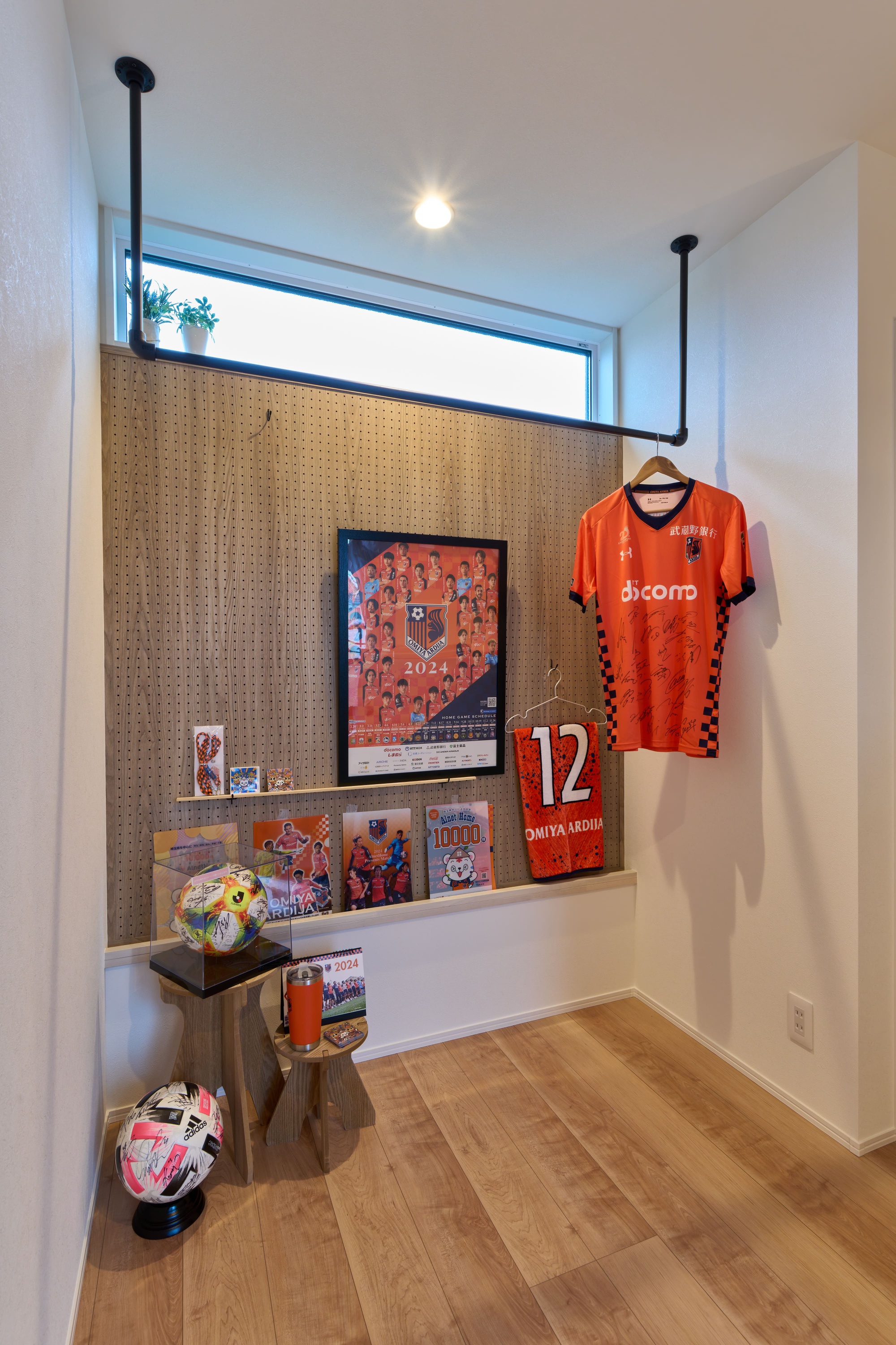 2階の主寝室と子ども部屋の間に「推し」を推すマグネットが貼れるフリースペースを用意。ポスターを貼ったり、コレクションを飾ったりと趣味を最大限に公開できるスペースで、推しを毎日堪能できます。