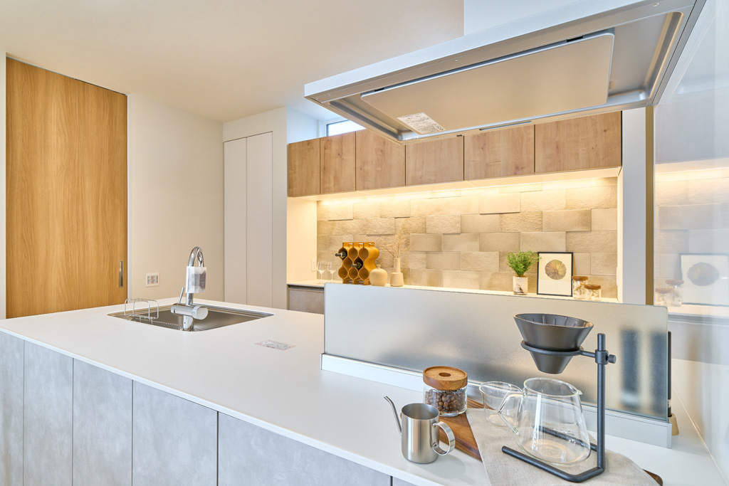 周りをぐるぐる回れるキッチン。動線が短くなることで日々の家事が楽になり、家事の時間短縮で生まれた自由時間は好きなことをして過ごせます。