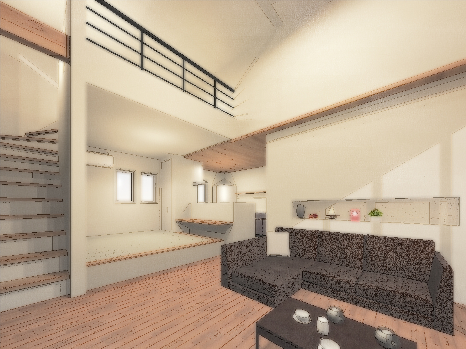 家族が集う憩いの場は、お子さんのおむつ替えやお昼寝、ひな人形を置いたりなど使い勝手の良い場所です。さらにカウンターを設けたことで、食事はもちろんお子さんの宿題を一緒に見るワークスペースとしても活用できます。