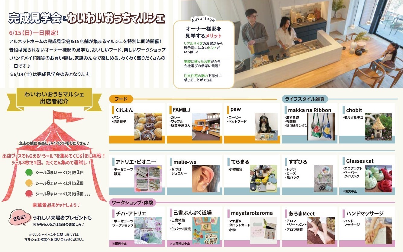 さらに15(日)は同会場内で暮らしのマルシェ開催!アンケートご記入でその場で使える500円クーポンをプレゼント。