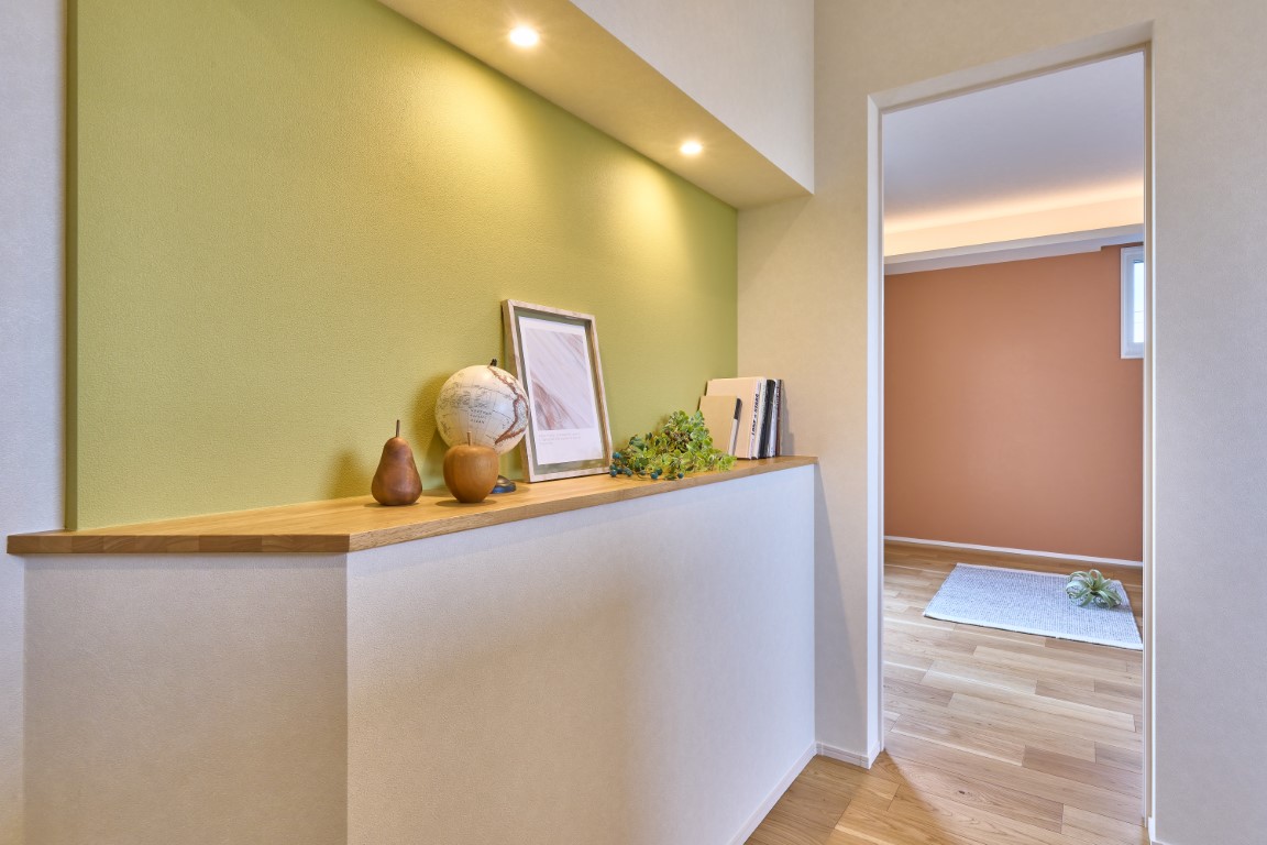 天井や壁面に間接照明を取り入れることで、空間にやわらかな光の広がりを演出。まぶしさを抑えながら、昼と夜で表情が変わる、落ち着きと上質感のある住まいを実現しています。