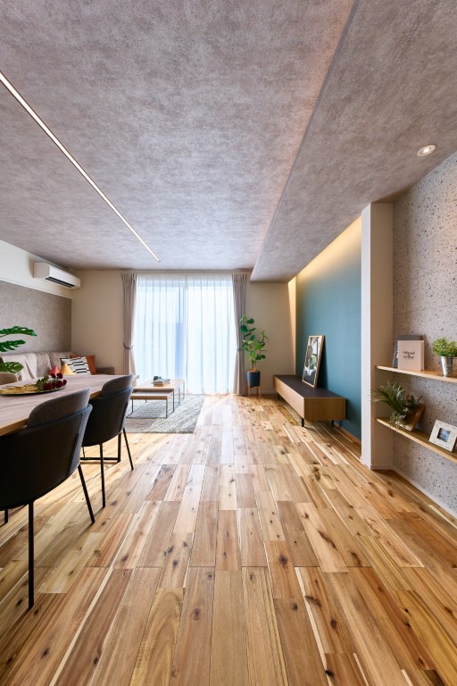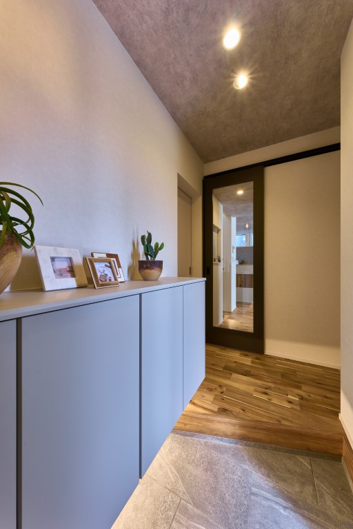 天井や壁面に間接照明を取り入れることで、空間にやわらかな光の広がりを演出。まぶしさを抑えながら、昼と夜で表情が変わる、落ち着きと上質感のある住まいを実現しています。
