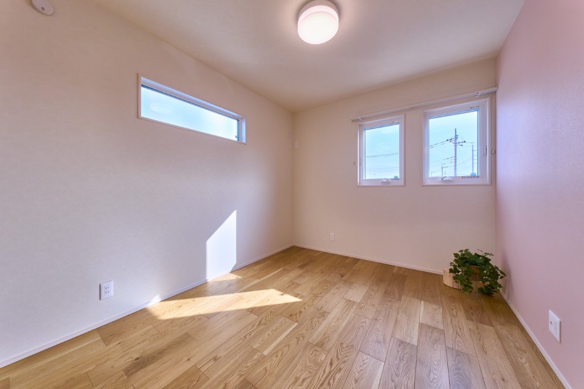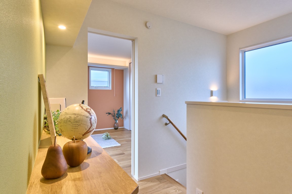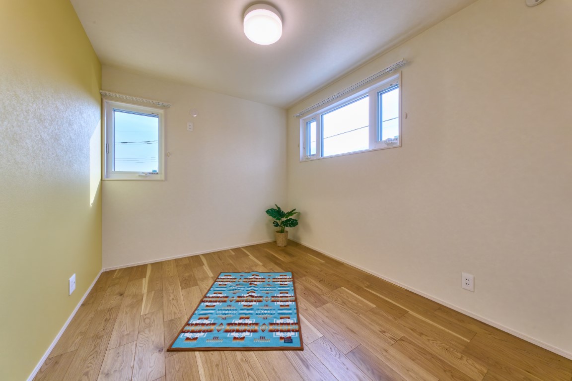 2階には主寝室と子ども部屋をバランスよく配置。全居室にクローゼットを備え、6.5帖・6帖・4.5帖と、実際に選ばれることの多い人気サイズを体感いただけます。家族それぞれが自分の部屋を持ち、ライフステージの変化にも対応しやすい住まいです。