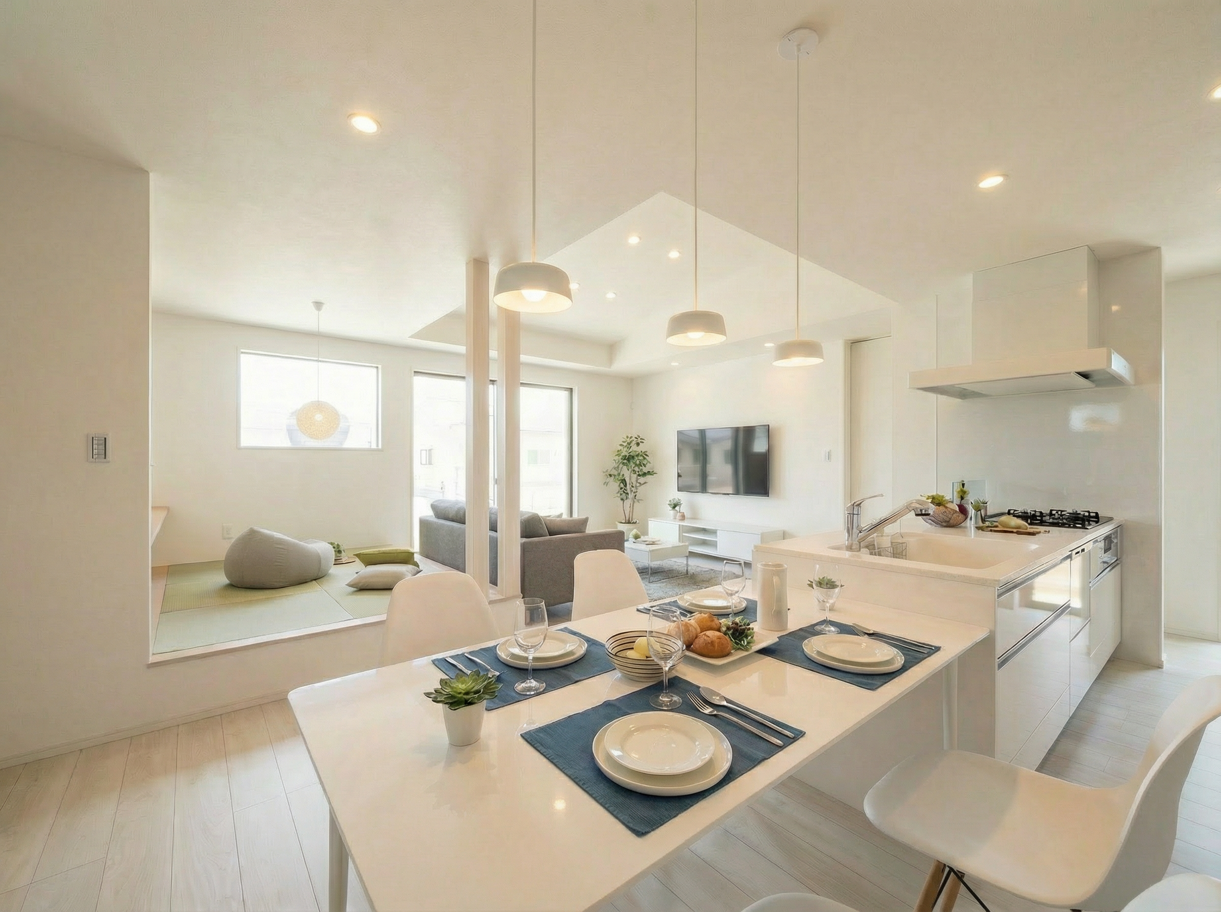 リビングの一角に設けた3.8帖の小上がり畳スペース。カウンターがあるのでテレワークや宿題スペースとしても◎お子さまの遊び場や来客用スペース、お昼寝にも便利です。