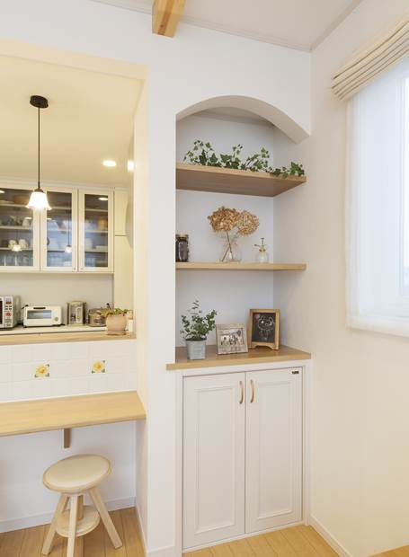 「イメージ通りの明るい住まいを実現できました」とS様。白い空間に、優しい木の色がマッチしていて、収納もたっぷりつくった室内はすっきりしています。「ママ友の評判も、とてもいいんですよ」とうれしそうに話してくれました。