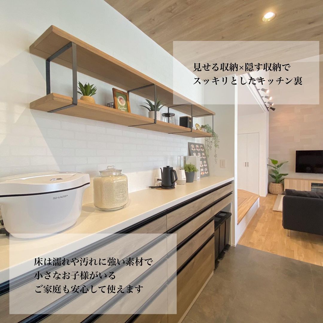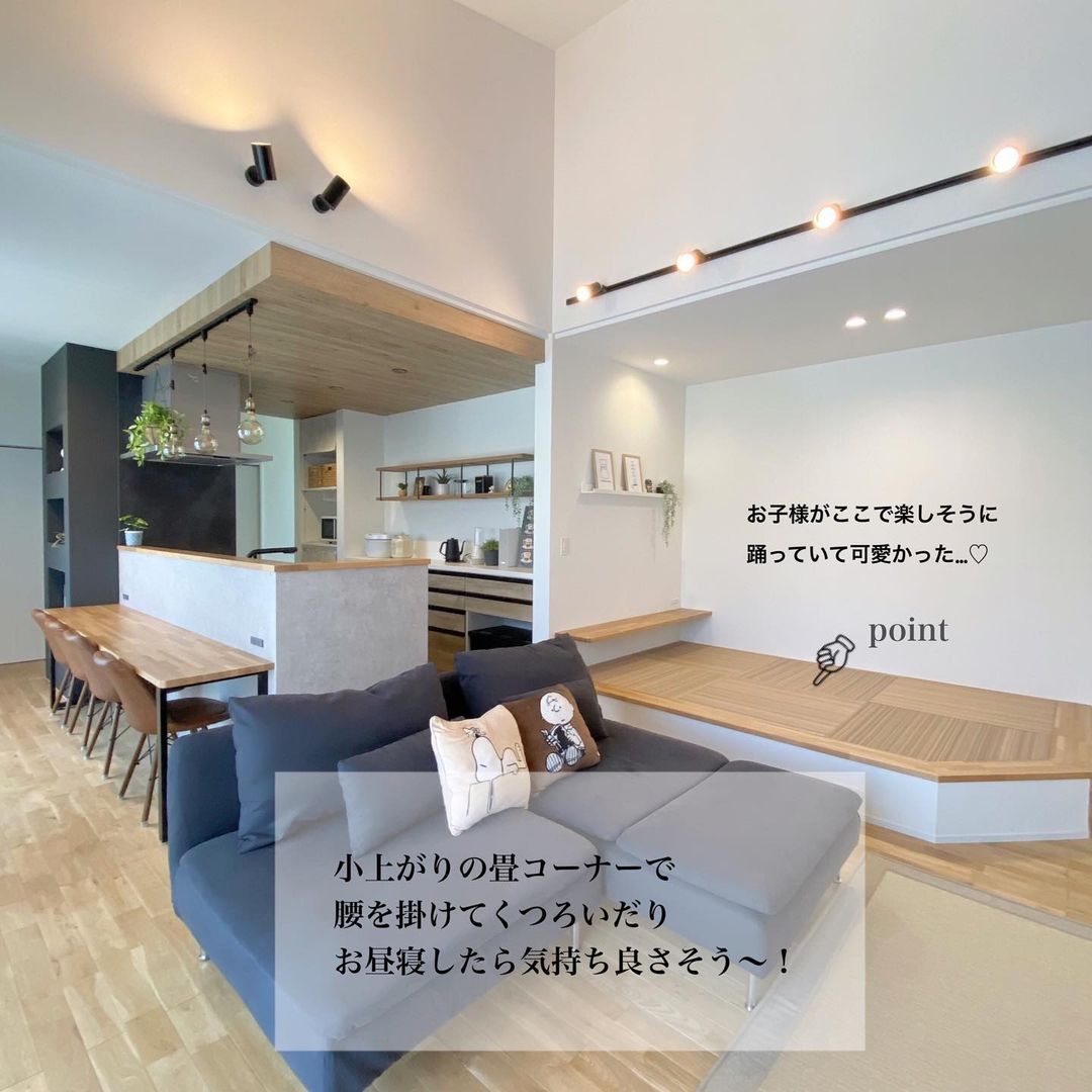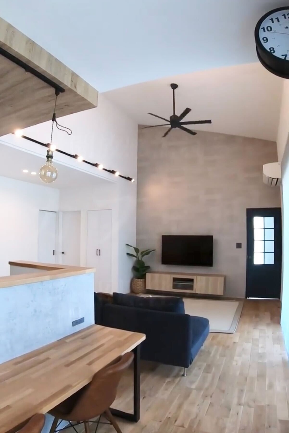 勾配天井と大きな窓が広がるLDKは、帰ってきた瞬間から明るく開放感の溢れる空間。寝室からクローゼット、水回りの少し変わった回遊動線はとても使いやすいとのことで、平屋を考えている方には是非見てほしいポイントです。また街中のカフェ風に統一されたインテリアはすべてM様のチョイスで、おうちの細かいこだわりがたくさん伝わってくる素敵なおうちです。