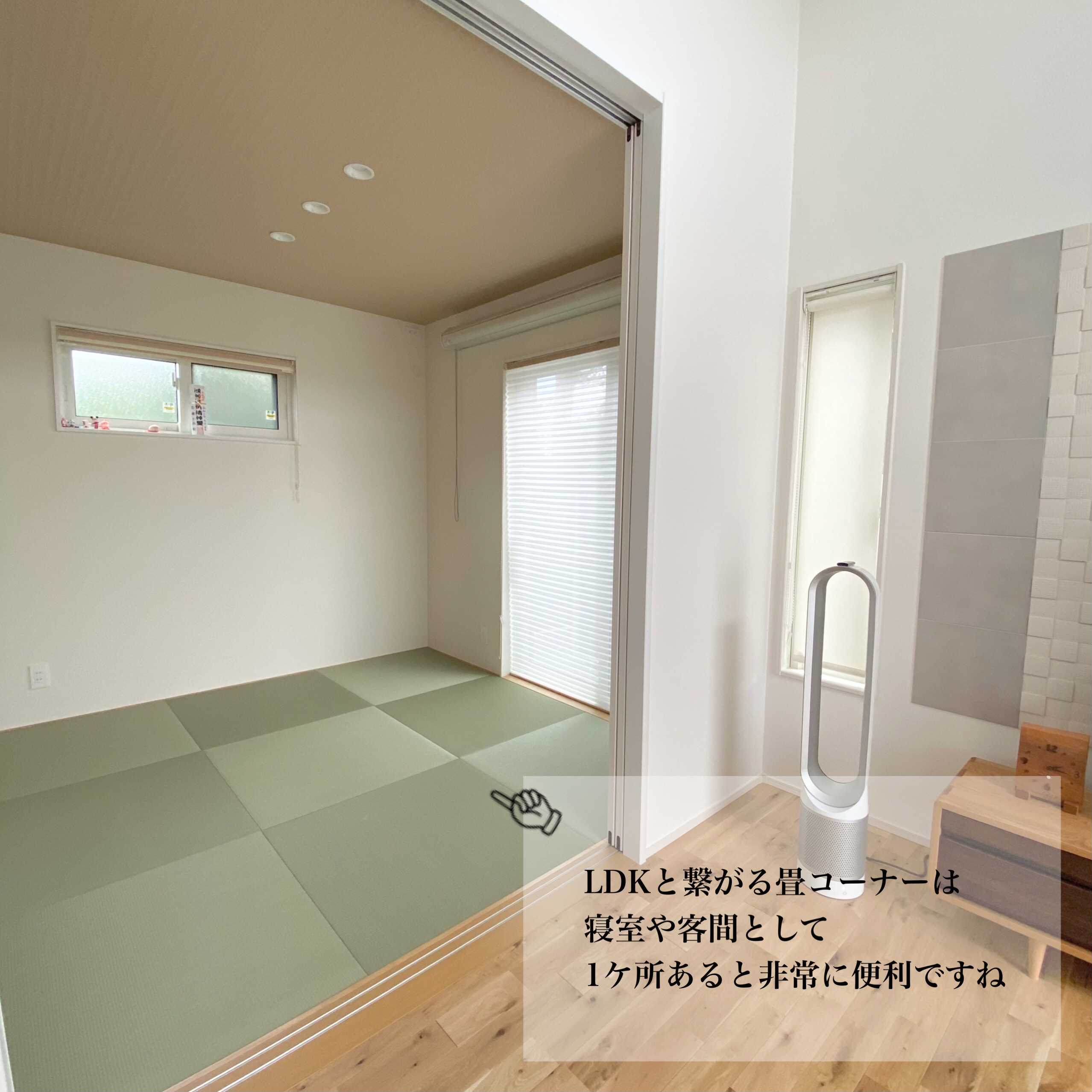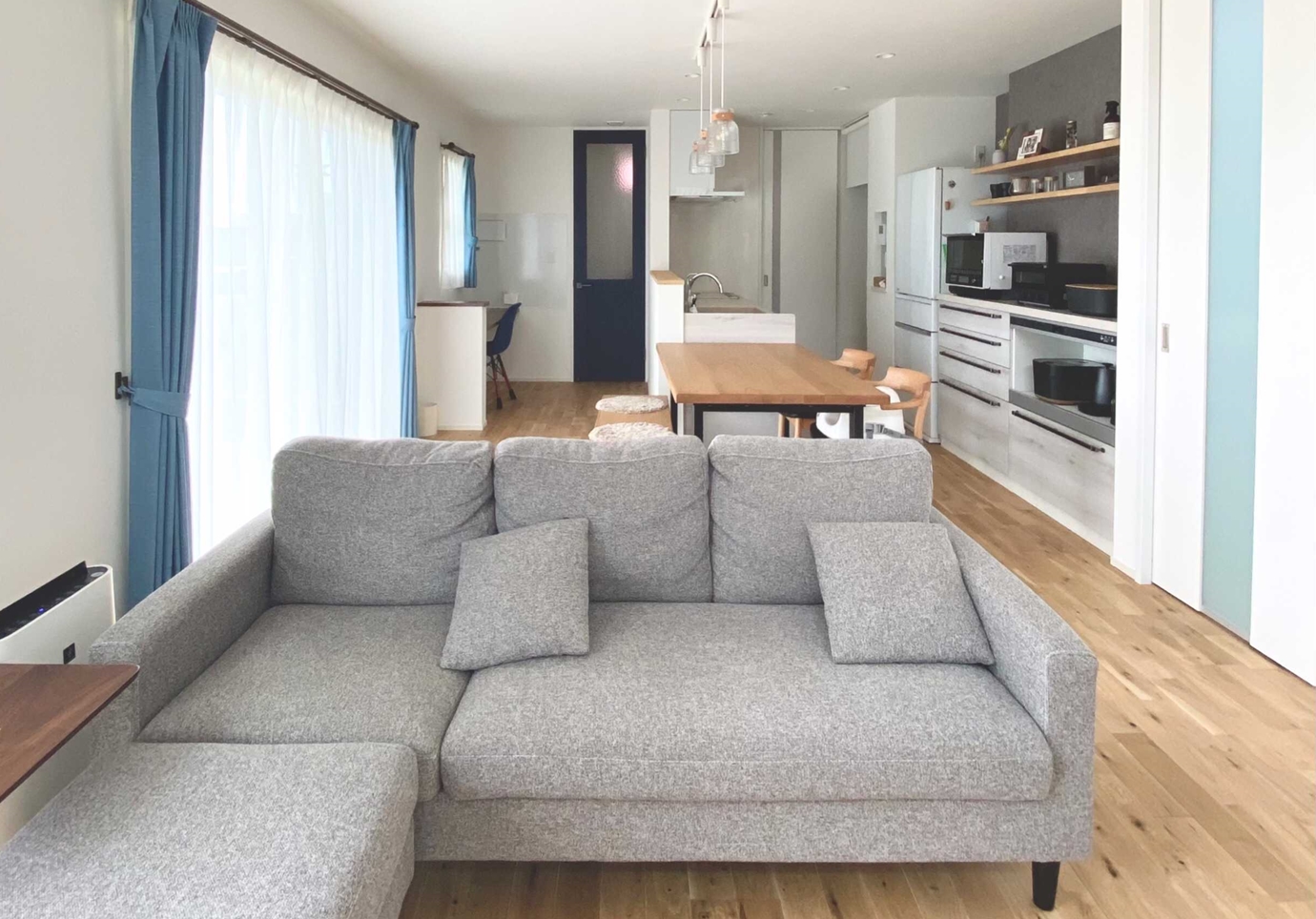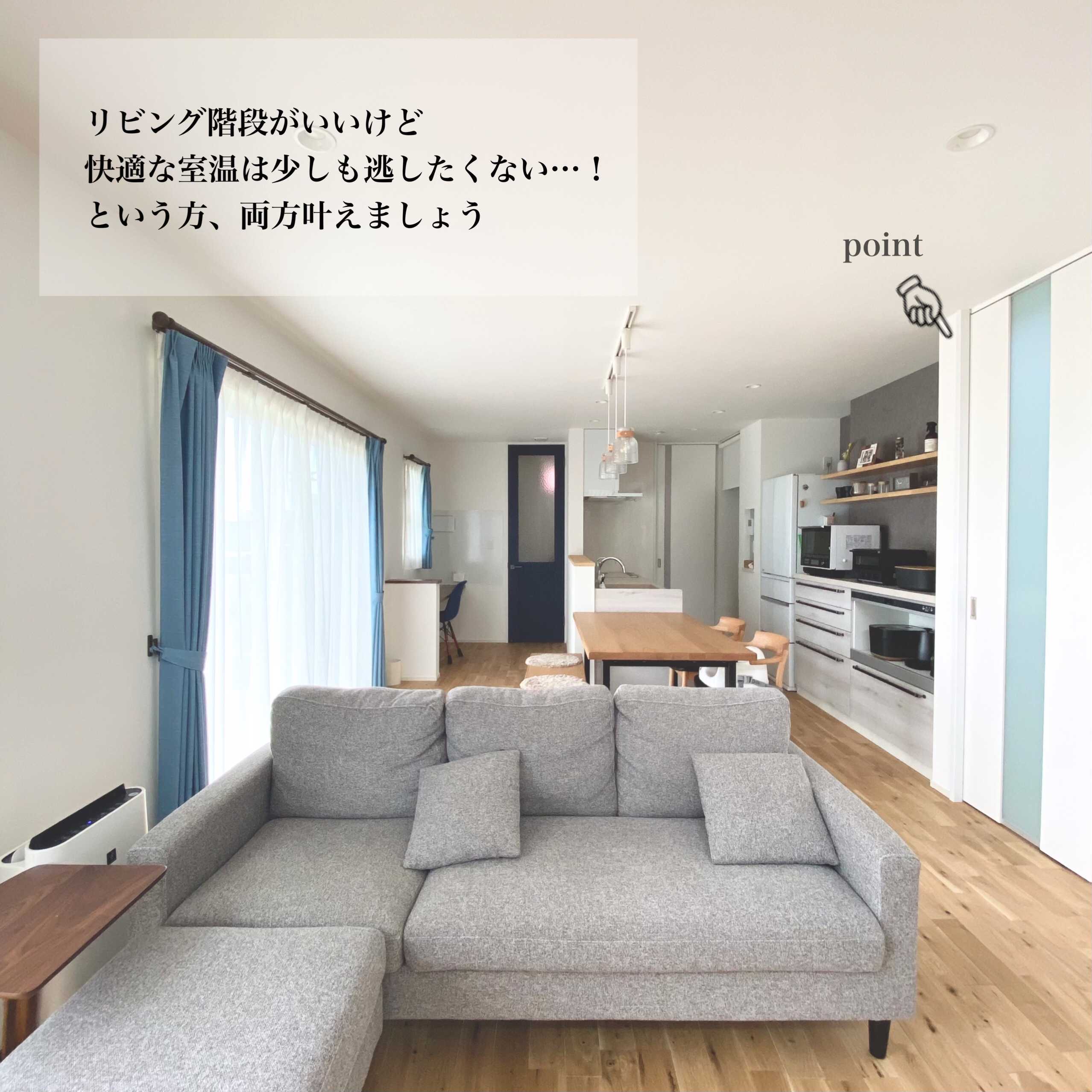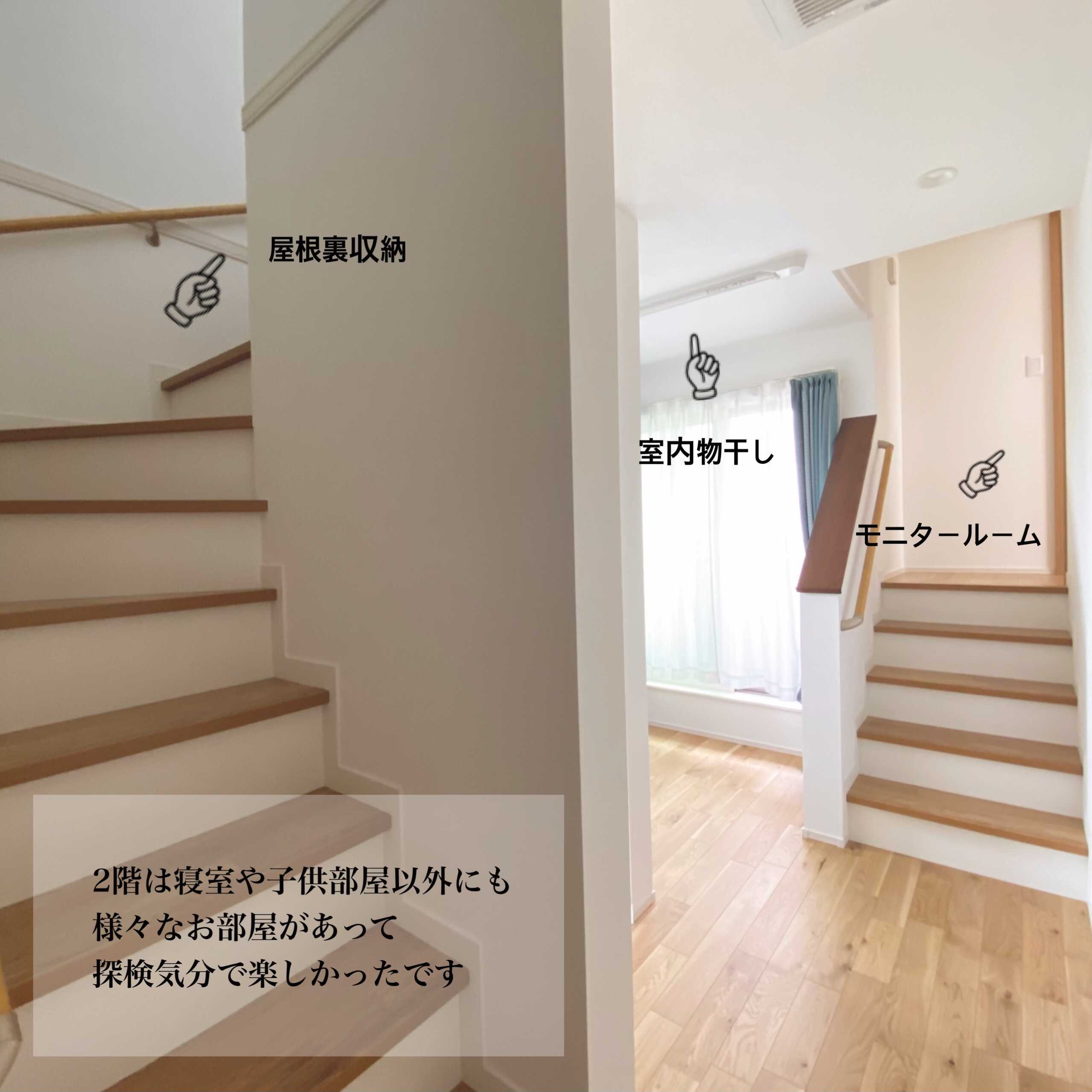 リビングの3.4mの高天井は明るくて開放感抜群。高い位置に窓を設けたことで、いつも明るい空間で過ごせます。高天井の上の2階部屋は映画が楽しめるお部屋になっていたり、子供部屋と寝室が繋がる大きなバルコニーがあったり、屋根裏へと続く階段が繋がっていたりと、外からは想像できないワクワクする造りになっています。また、収納は使う箇所にそれぞれたっぷりと取られており、洗濯動線や人感センサー、ゆったり使える大きめのお風呂など毎日の生活が考えられたお家です。