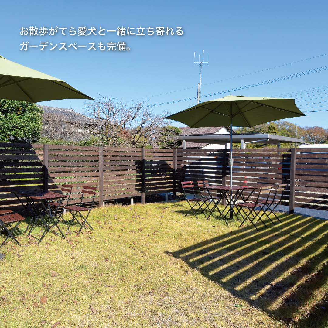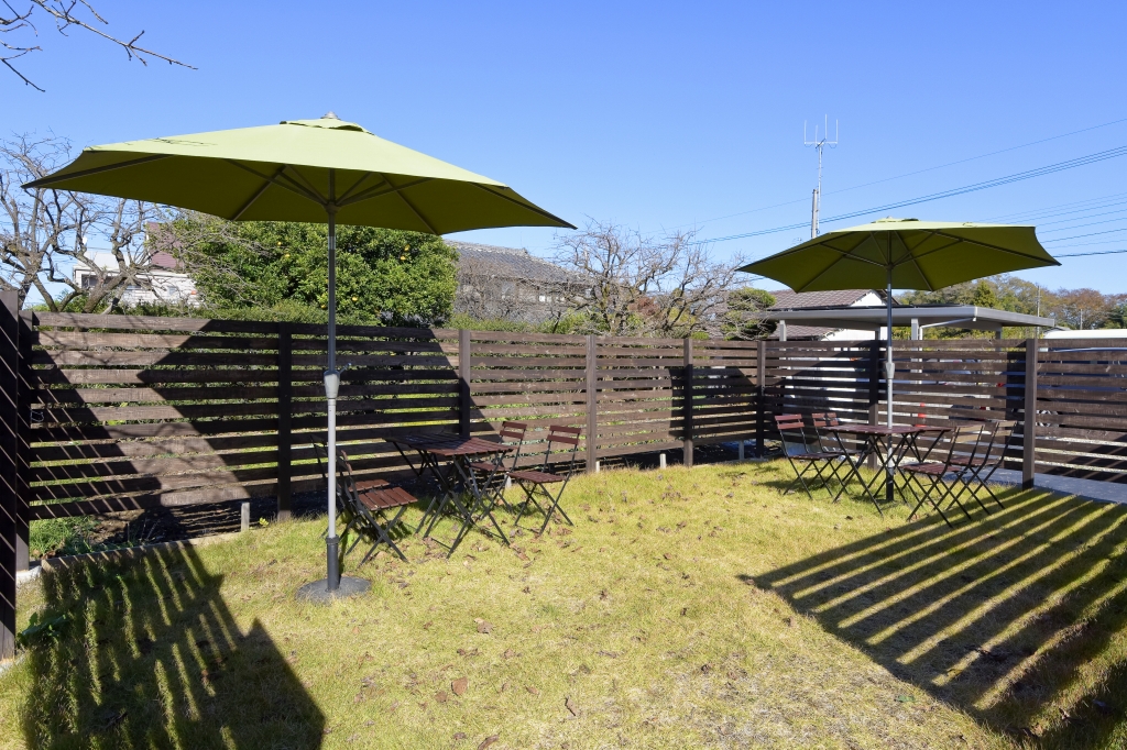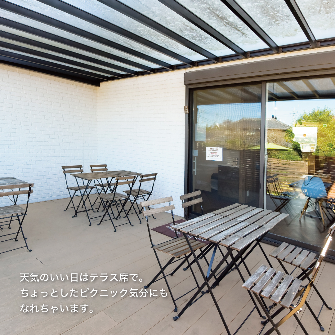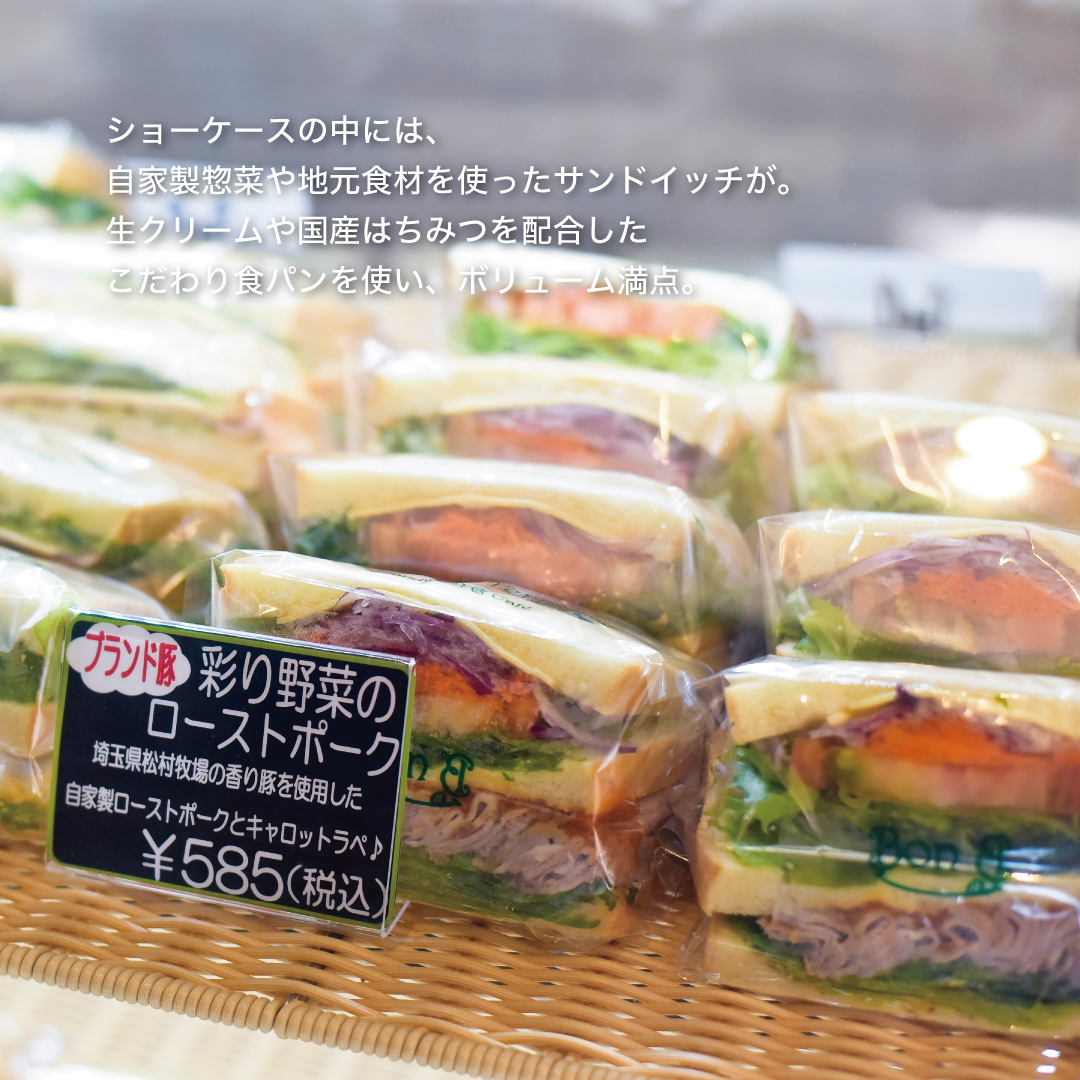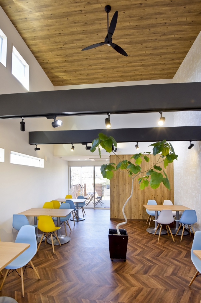 地元に密着したボリューム満点の手作りサンドイッチ専門店「Bon Bon Terrasse」。オーナーのM様は、障がいのある方が働く就労支援事業所としてお店を立ち上げました。お店は親しみやすいカントリー調の外観が出迎え店内は居心地良く、おしゃれなカフェ空間としてデザイン。床や壁・天井にはぬくもりを感じる木目調の素材を、カフェスペースには大きな梁を2本這わすことで構造の安全性だけでなく見た目の美しさもプラスしました。また高天井の開放感だけでなく、四方に窓を設置することで店内は明るく外との繋がりも感じることができます。サイクリング中でも、散歩中でも気軽に寄りやすいようにと外にも様々な食事スペースを提供。盲導犬の入店も可能など地域にやさしいお店として思いが詰まったサンドイッチ屋さんです。
