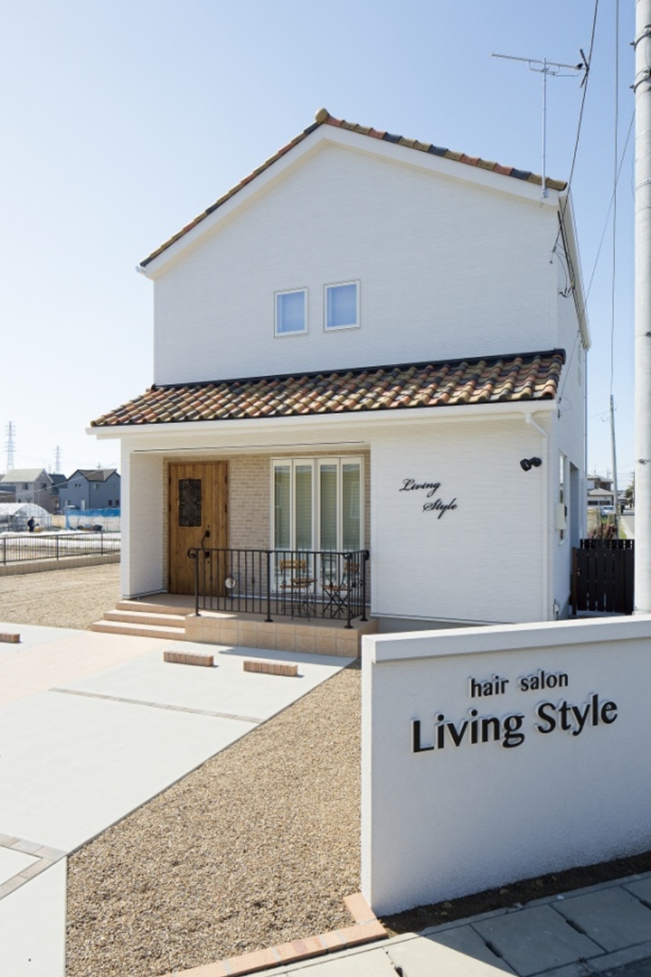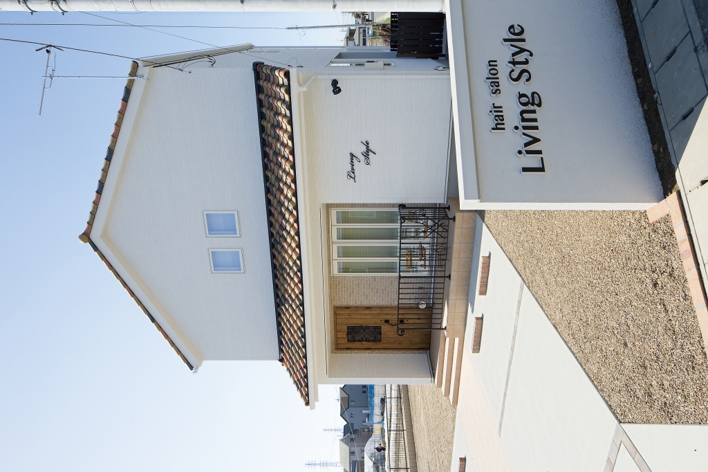 本物志向の大人の女性に向けた上質なメニューを取り揃えたアットホームな美容室「Living Style」さん。ホワイトでシンプルな家の外観に、色の異なる瓦の屋根が印象的。木の玄関ドアやタイル調のアクセント、アイアンの柵などを使用してかわいい印象に仕上げています。店内もピンクやイエローなどのパステルカラーを多用し、明るくてかわいい印象に。ゆったりとした時間の中で、自分だけの自由な癒しの時間をお過ごしいただける完全予約制の美容室です。