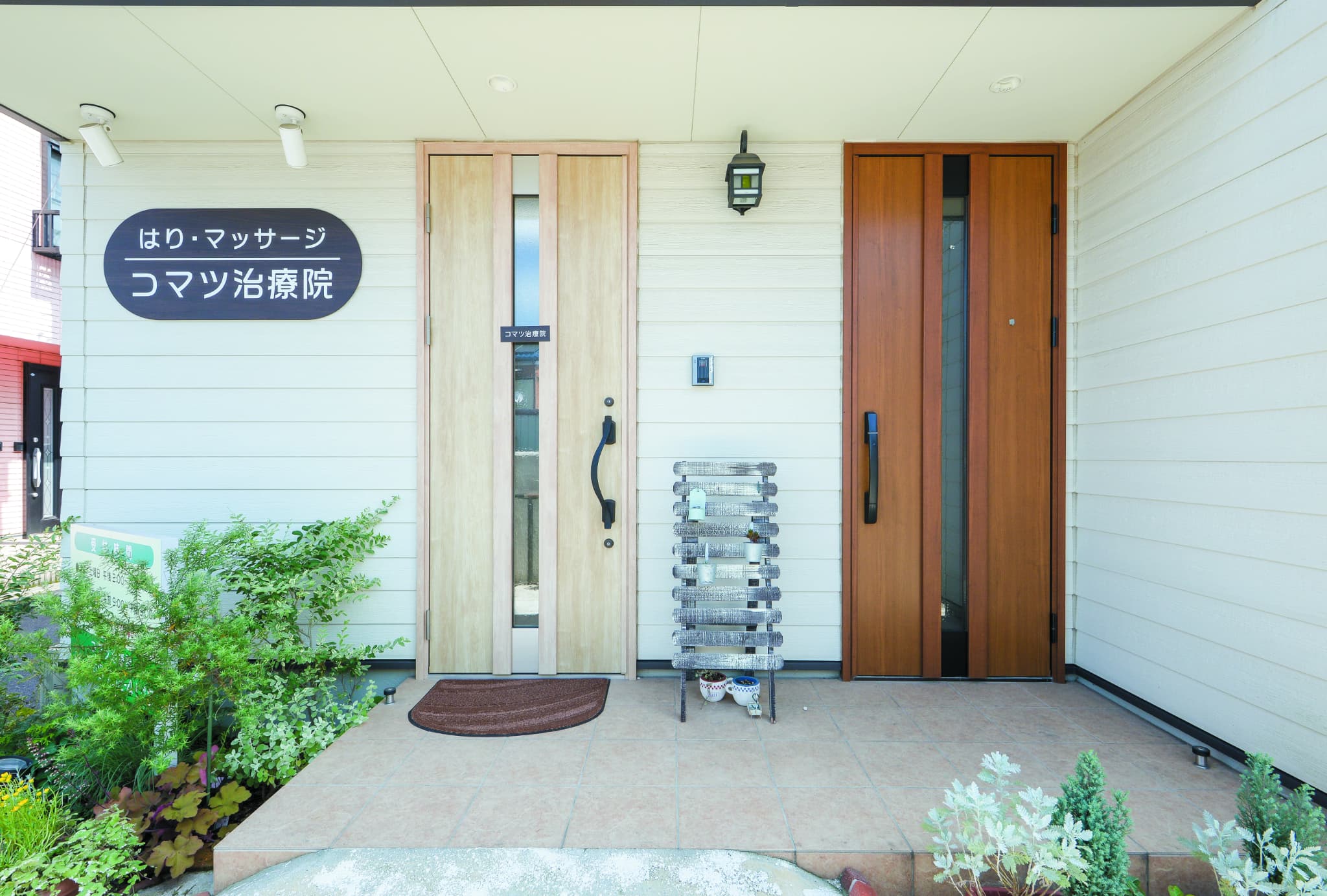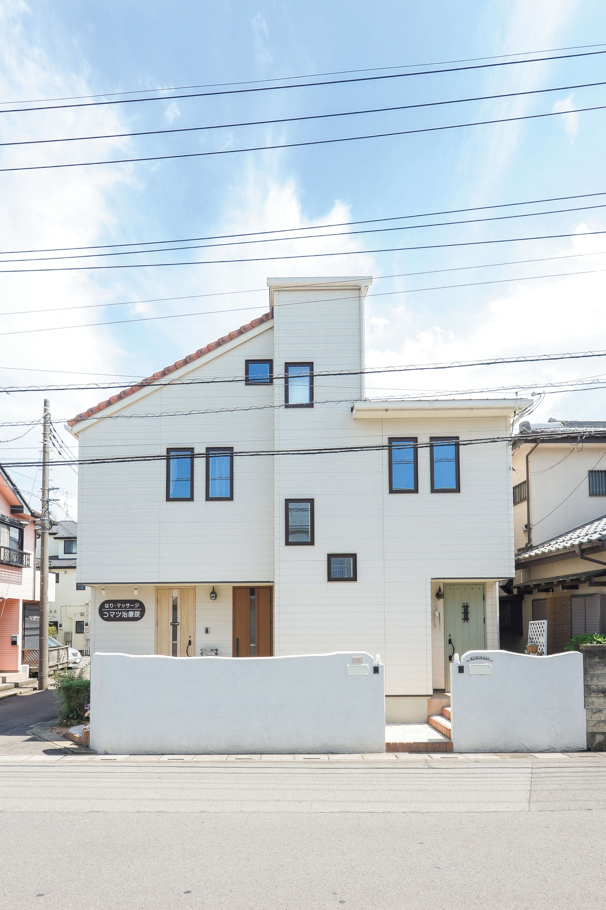 特徴的な外観の形と窓の使い方が印象的な埼玉県春日部市の「コマツ治療院」さん。患者様の気持ちに寄り添い、地域の方に愛されるアットホームな治療院です。住宅と一体になった店舗では、はりやマッサージを行っており、最近ではヨガで地域との交流を深められています。居住部は木の暖かみが感じられ、タイルなどを使用したカントリー調でかわいいスタイル。お家から人柄が伝わる店舗型住宅です。