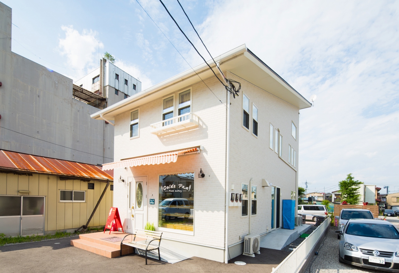道の駅日光ニコニコ本陣からすぐ近く、地元で50年以上愛されている「大出パン」さん。あんぱん・メロンパン・カレーパンなど、昔懐かしのパンから流行りのパンまで種類豊富に扱っています。クリーム色で明るく、かわいいお店に美味しいパンたちが並ぶ、地元に愛されるパン屋さん。屋根には太陽光発電システムを搭載した店舗型住宅です。