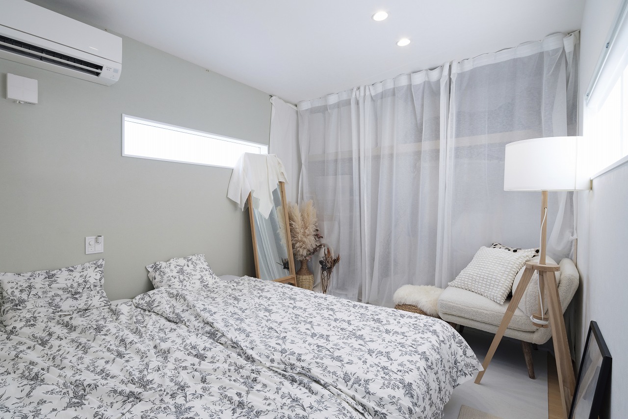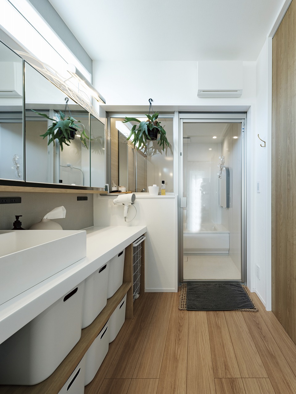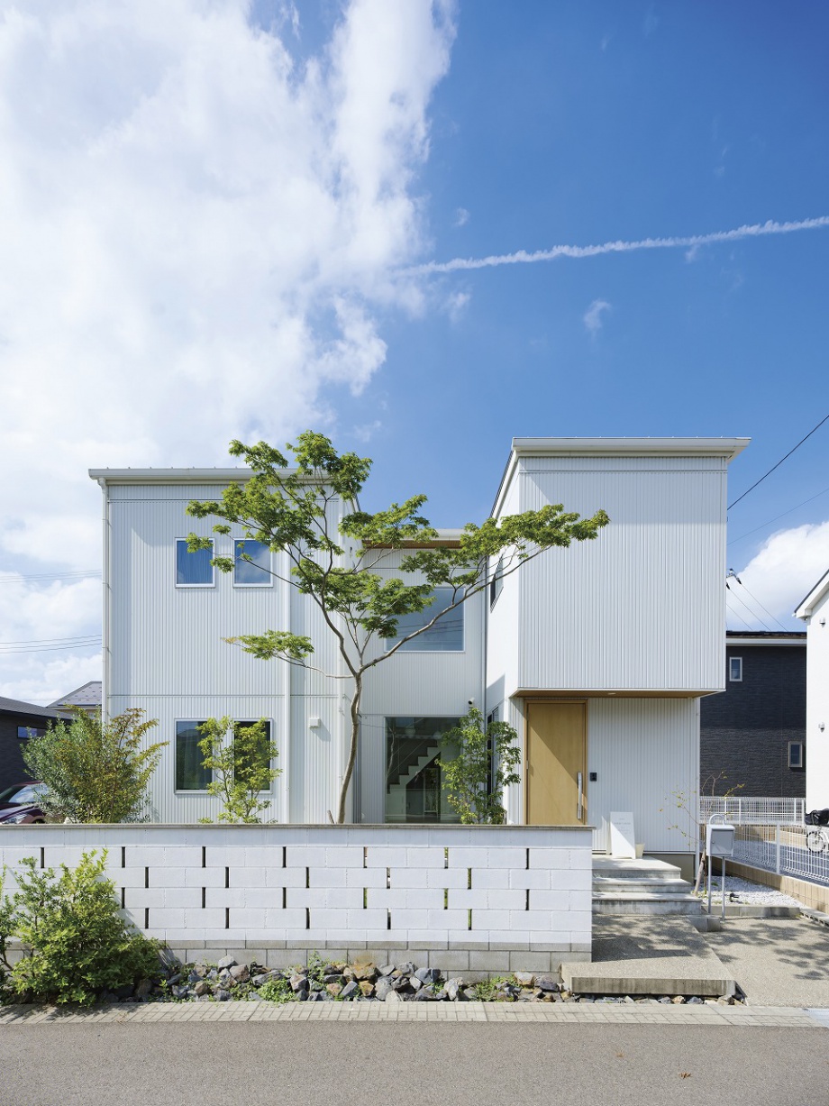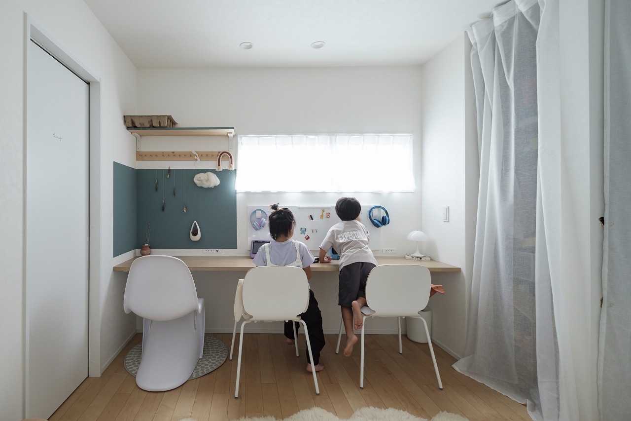 DIYで日々新しい暮らしの形を見せてくれる、ホテルライクなデザインのコの字型2階建ての家。新しい家での暮らし方を徹底的に考えてゾーニングしたLDKは、リビングとダイニングを別々に設けています。造作洗面やガラス貼りドアのお風呂、3帖のコンパクトなお部屋、魅せるトイレ、突然の来客にも困らない収納などL様ならではのこだわりが盛りだくさん。遊び心のあるボルダリングスペースにも注目です。