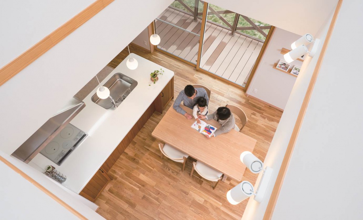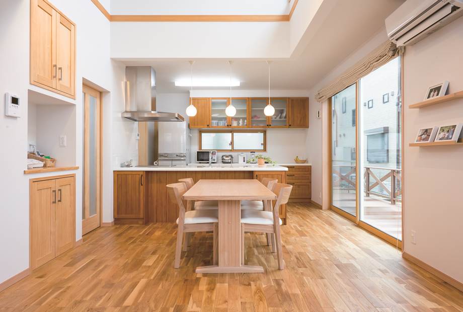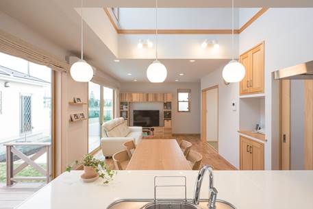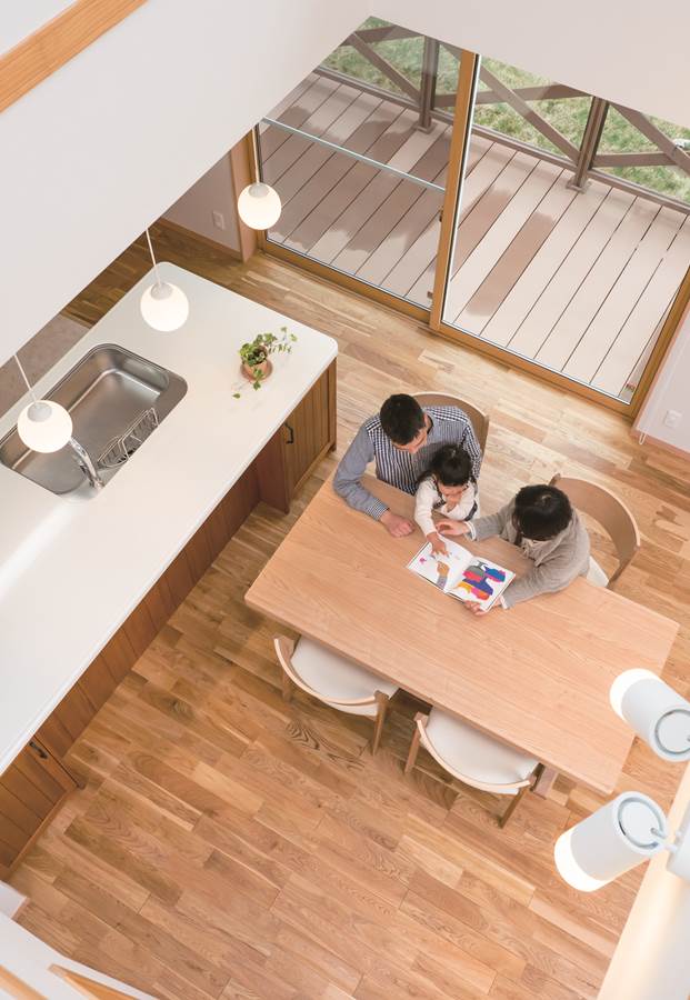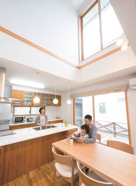 大きな吹き抜けのリビング・ダイニング。