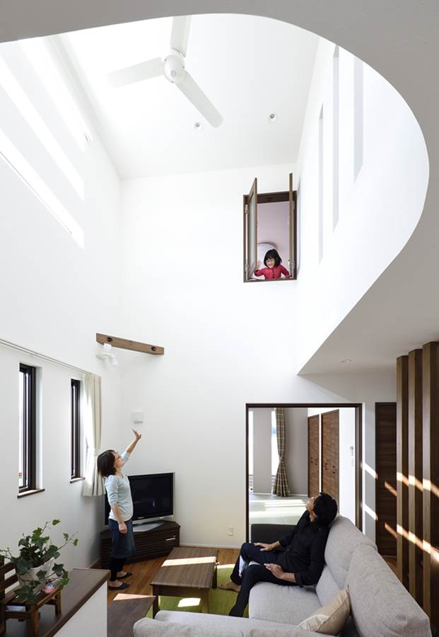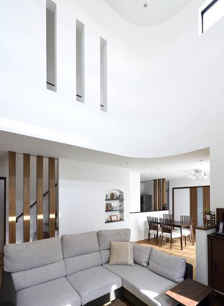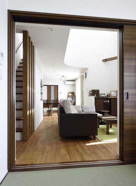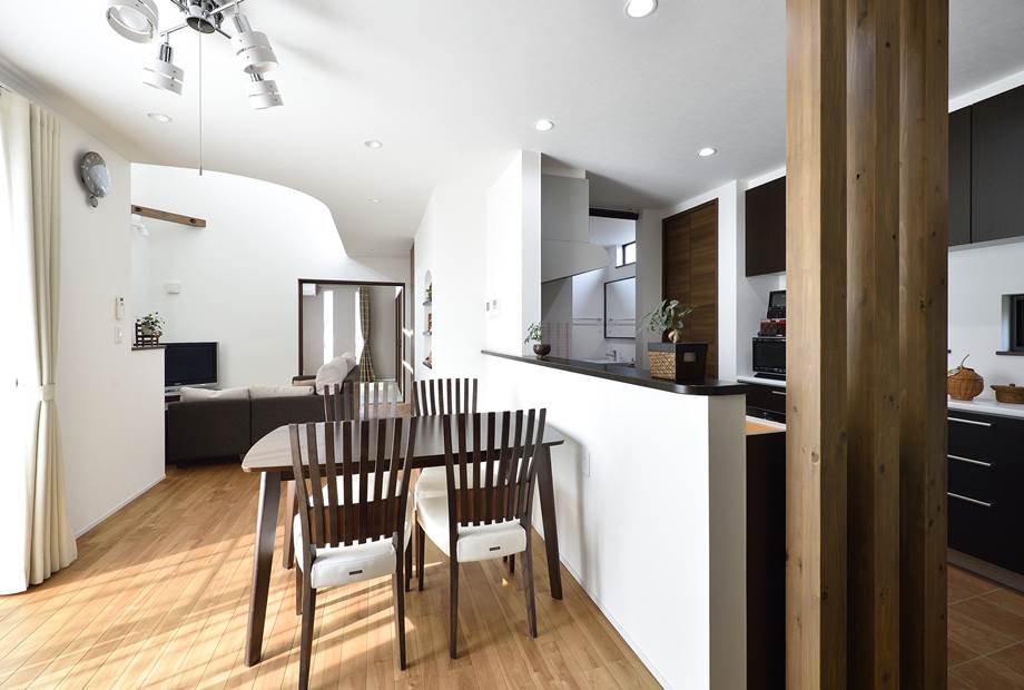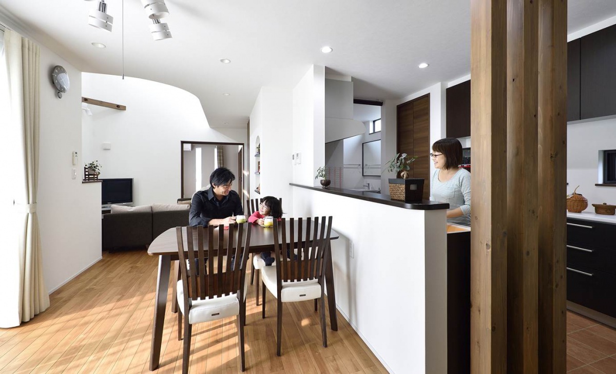 家族の絆が深まる工夫をデザインと自然素材の力で叶えた住まい。随所にコミュニケーションが取りやすい工夫が見られ、いつでも顔を合わせながら会話ができる家族のライフスタイルに最適なお家です。