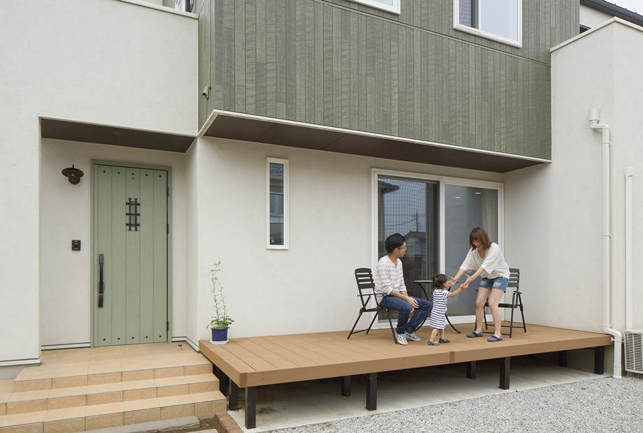 リビングから続くウッドデッキ。