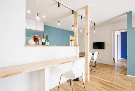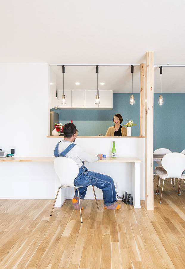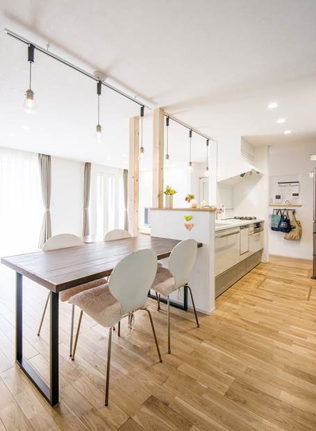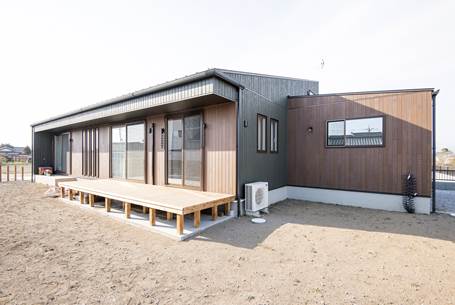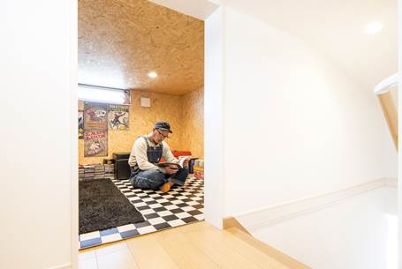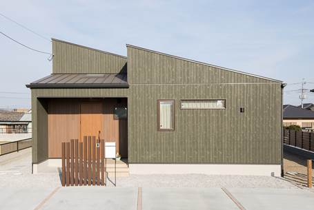 濃い緑と茶色を使った外観は、カフェをイメージしたもの。ひと目を惹くデザインが気に入っています。家族が集うリビングやデッキ、隠れ家である小屋裏など思い切り自由な発想で、こだわりを実現しました。
