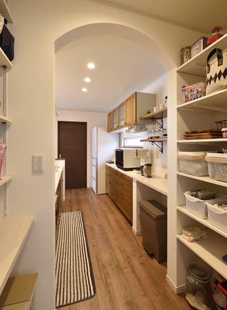キッチン→パントリー→ランドリーをぐるっと回遊でき、家事の時短に。