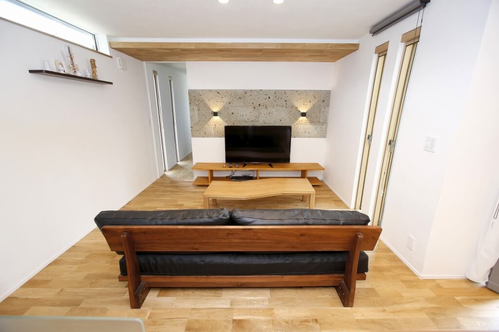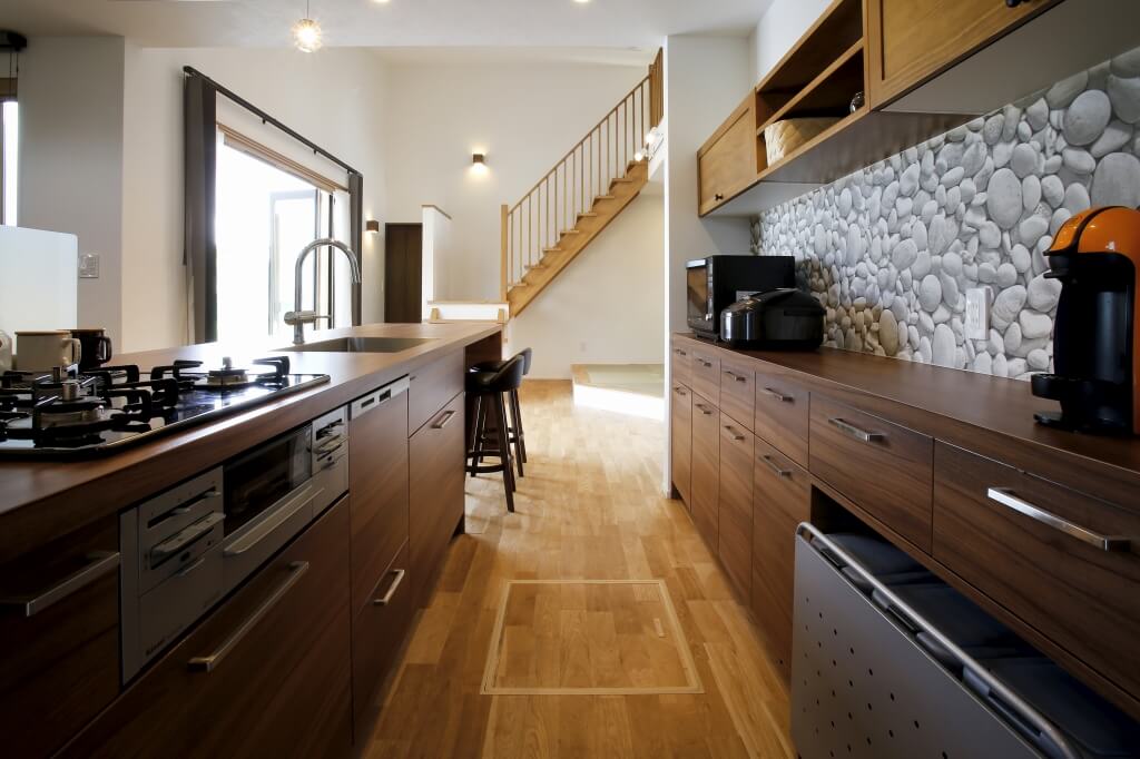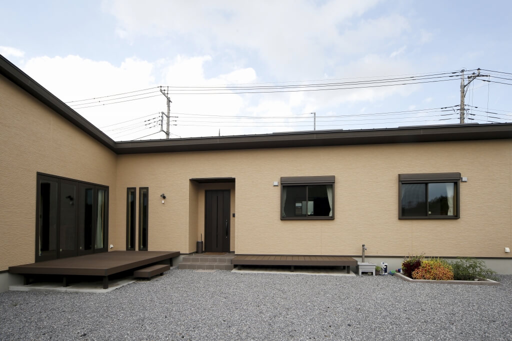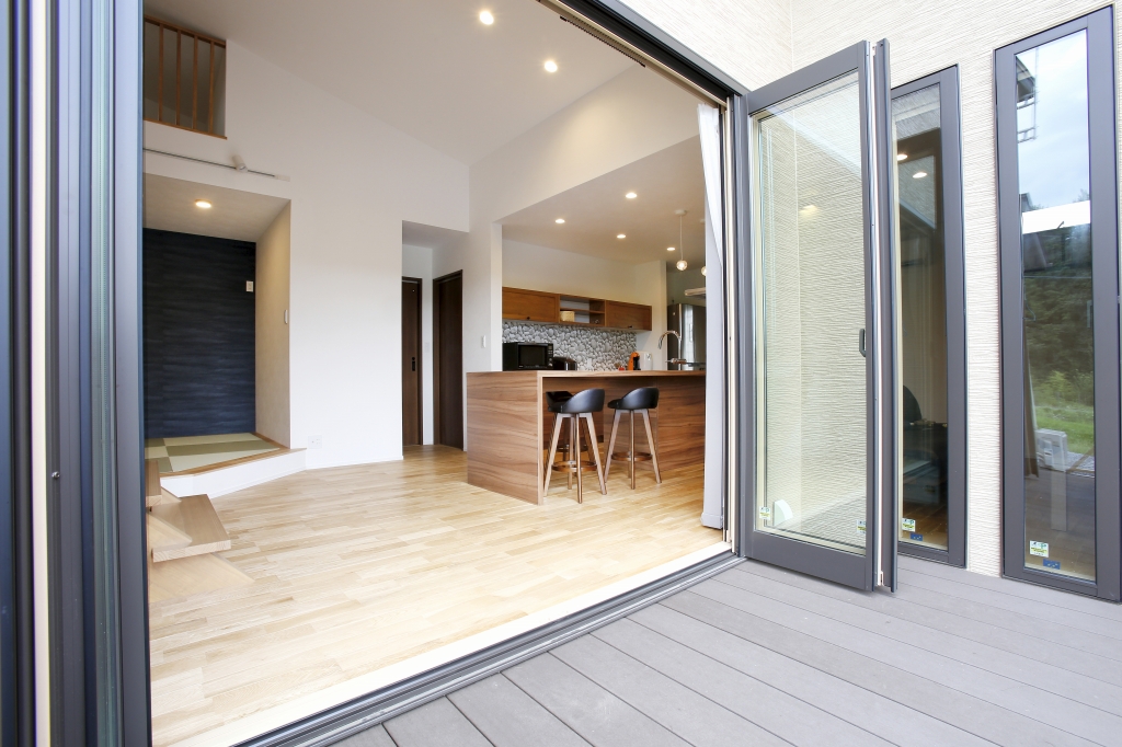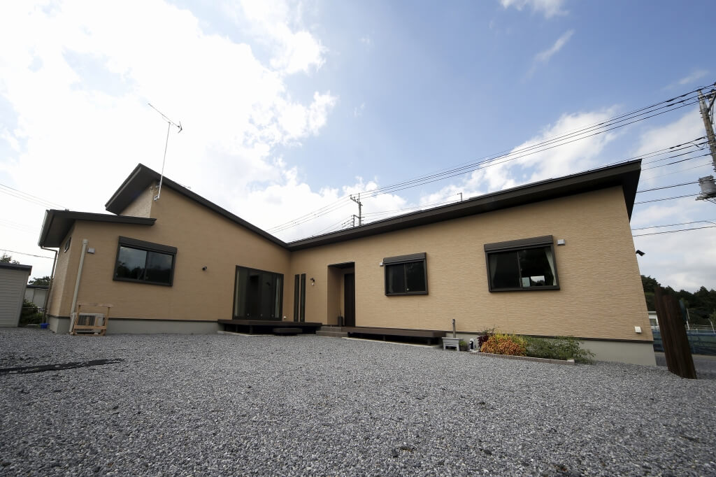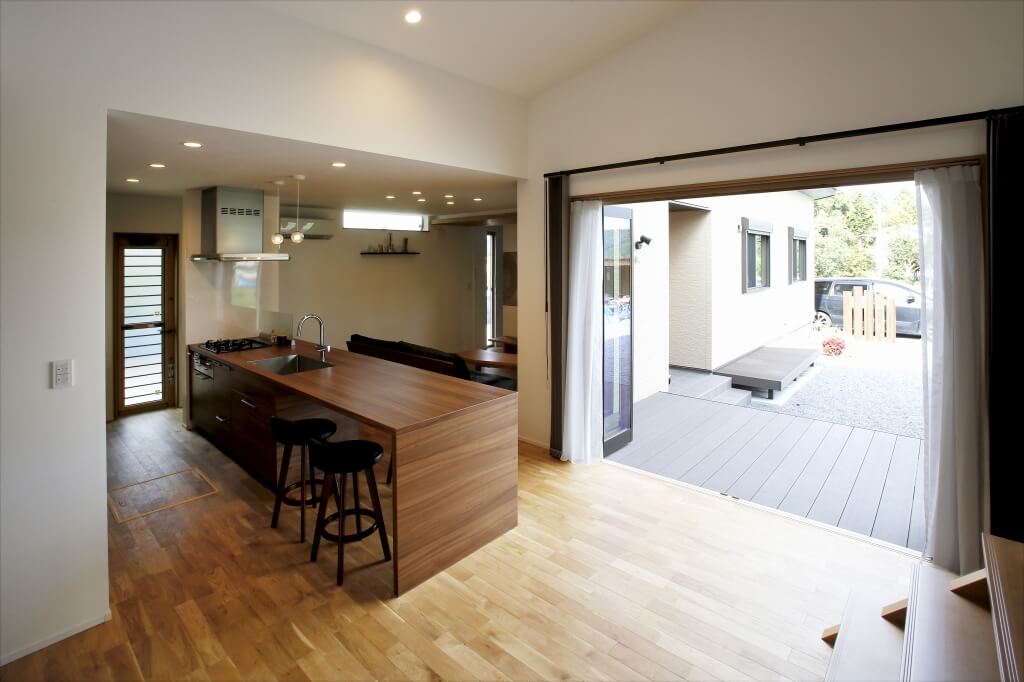 当初ご夫婦で平屋を計画していらっしゃいましたが、お子さまたちは「階段のある家」に住みたいと希望。そこで屋根の勾配を活かした階段と収納スペースを設けるプランを提案。大開口の窓と高天井による解放感が心地良い、双方が納得する理想の住まいが実現しました。