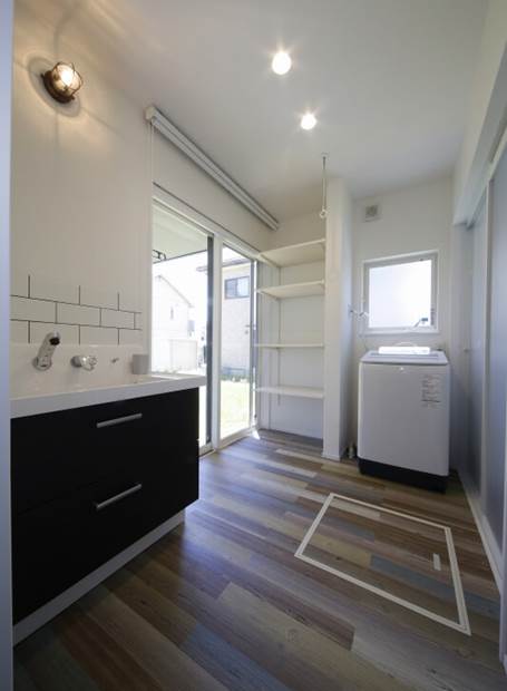 外で泥だけになって遊んだら、そのままお風呂場に直行できる動線