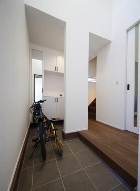 自転車も置けるひろびろ玄関