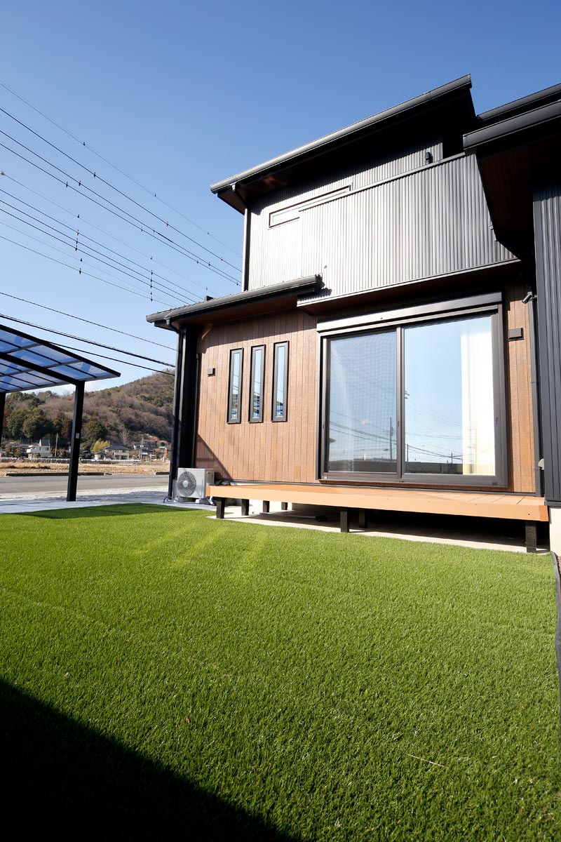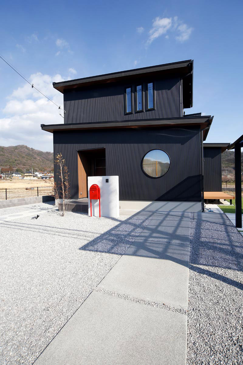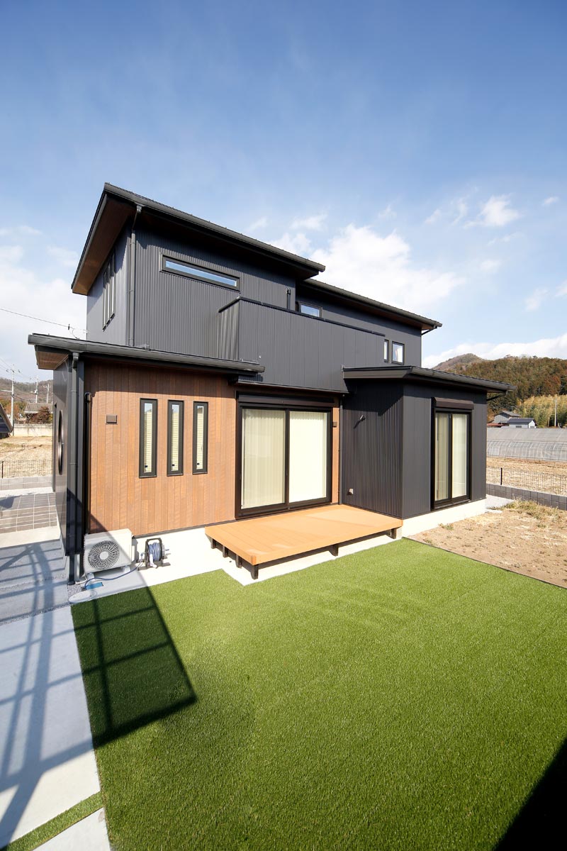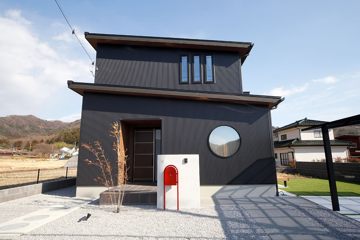 黒のガルバリウムの外壁がモダンな雰囲気のO様邸。家事動線を1か所にまとめた時短動線や、細部にまでこだわったデザイン。「せっかくの家づくりだから、見た目にも住み心地にもこだわりたい」というOさまの理想を叶えることができました。