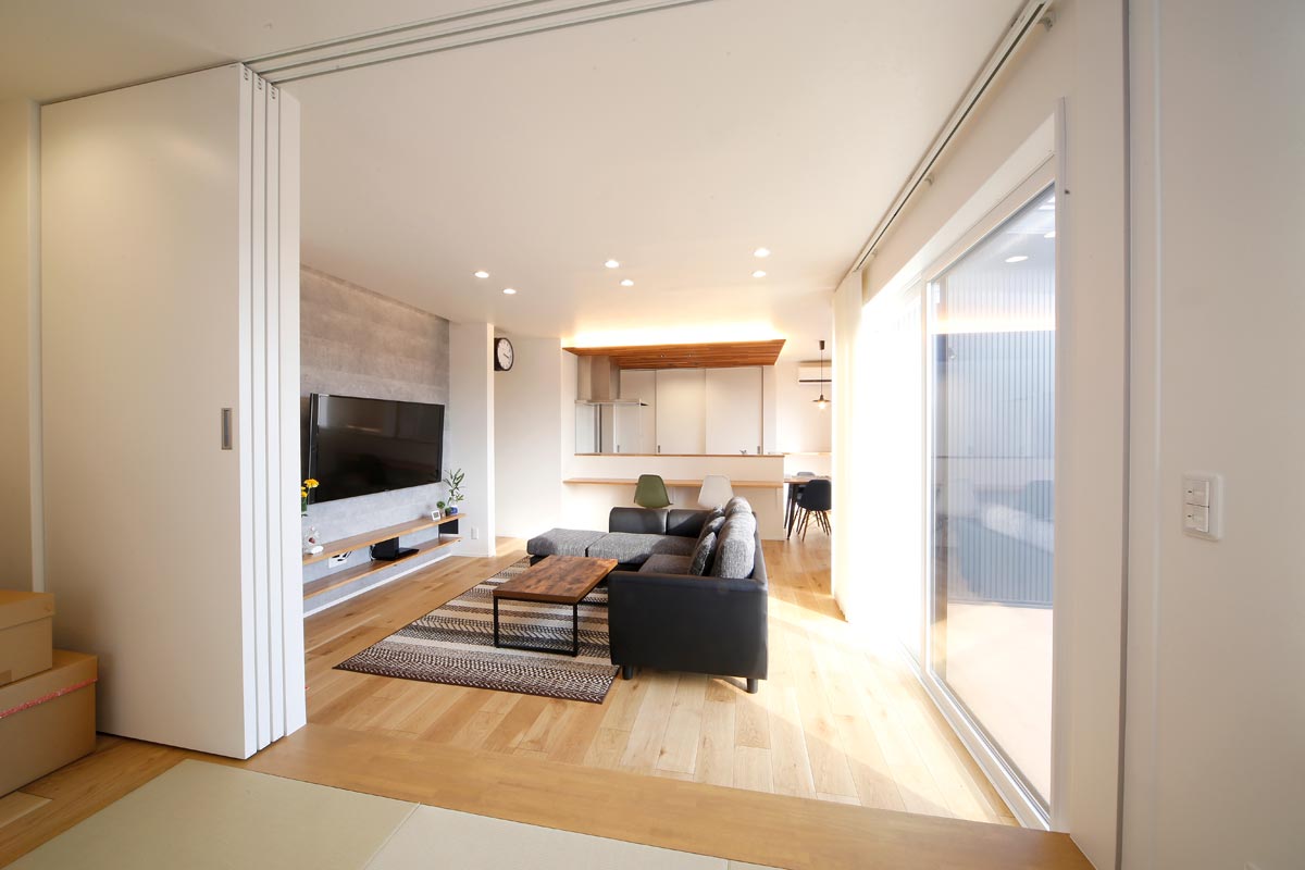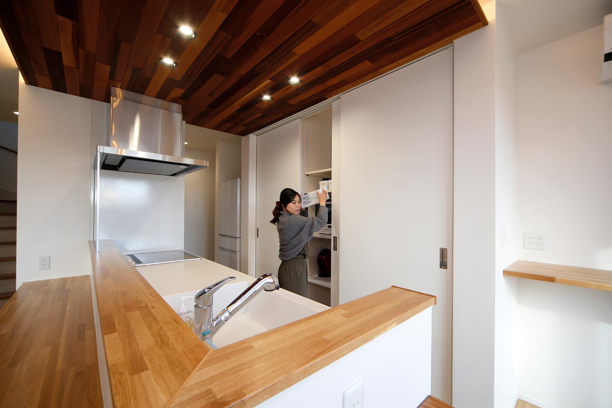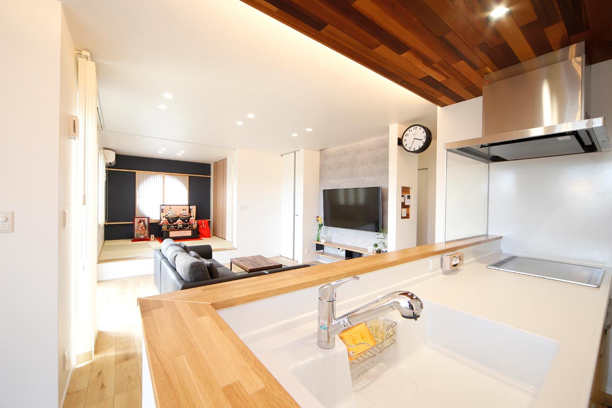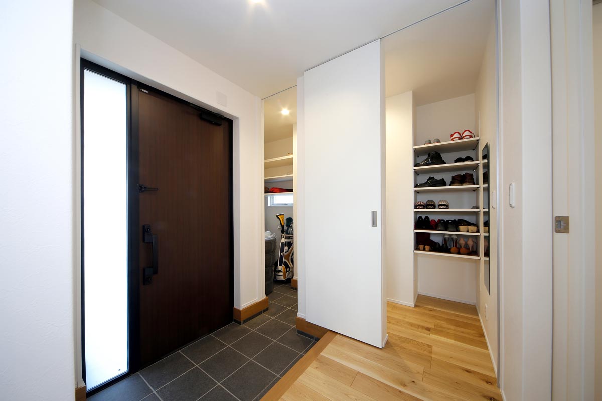 黒のガルバリウムの外壁がモダンな雰囲気のO様邸。家事動線を1か所にまとめた時短動線や、細部にまでこだわったデザイン。「せっかくの家づくりだから、見た目にも住み心地にもこだわりたい」というOさまの理想を叶えることができました。
