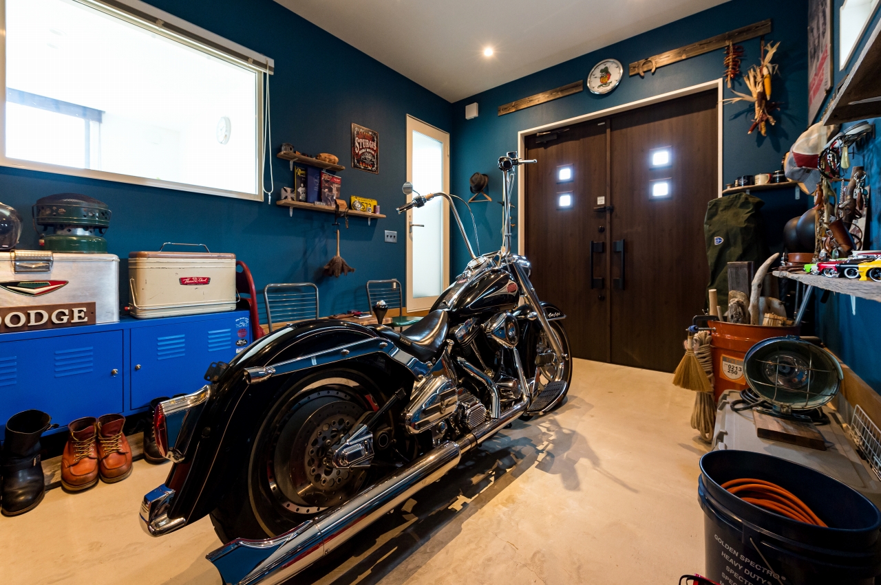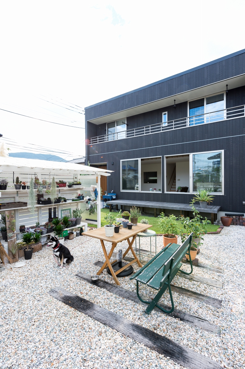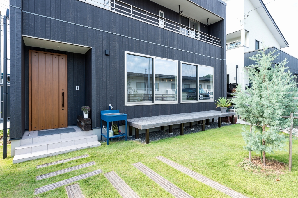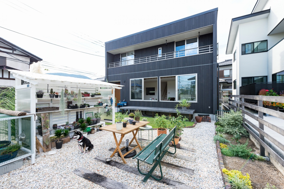 ガレージや階段下の書斎スペースなどさまざまなこだわりを詰め込んだK様邸。ガーデンには収納棚やベンチも設置して、家族で楽しまれているそう。ガレージにいても、お庭にいてもリビングからよく見えるので、家族がゆったりとコミュニケーションを取ることができます。