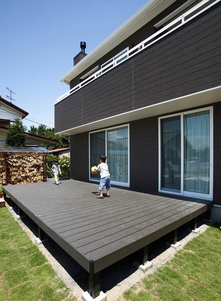 遊び場としても活躍するウッドデッキ。