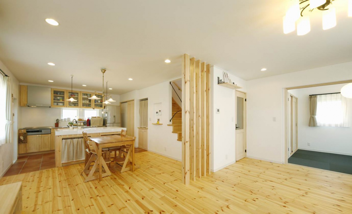 裸足で歩きたくなる無垢材の床。