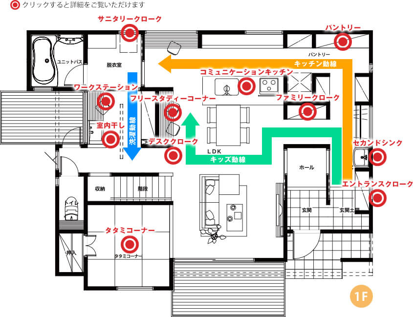お子さんの行動や持ち物に合わせて「場所と収納」を配置。