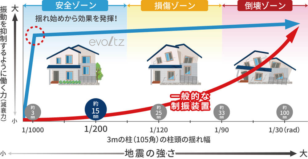 自動車技術と共に進化した軽量・高強度の材料を採用。木造住宅に取り付けることを前提として穴の位置も計算して配置。木痩せ、木割れにも対応し、evoltzが長期間性能を発揮することができる秘訣の1つです。また、穴の位置、径を高精度化することで揺れの伝達効率を上げ、揺れへの反応速度を上げています。