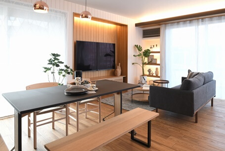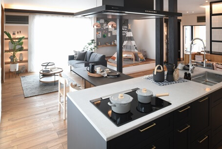 時間が足りないを解決する「家事シェア提案」、散らかりやすいを解決する「収納提案」、子どもを規則正しく育てるための「子育て提案」を実際に体感することができます。他にも、半屋外というロケーションにカフェをイメージしたくつろぎの空間「アウトドアカフェ」、階段スペースにお気に入りの本がすぐ取れる「ライブラリーステップ」、家族との会話が弾む「コミュニケーションキッチン」など見どころがいっぱいの展示場です。