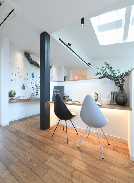 熊谷ハウジングステージ内に建つ「熊谷展示場」は、ナチュラルシンプルの外観に、アルネットホームが新たに提案する共働き家族を応援する「トモラクの家」を再現。